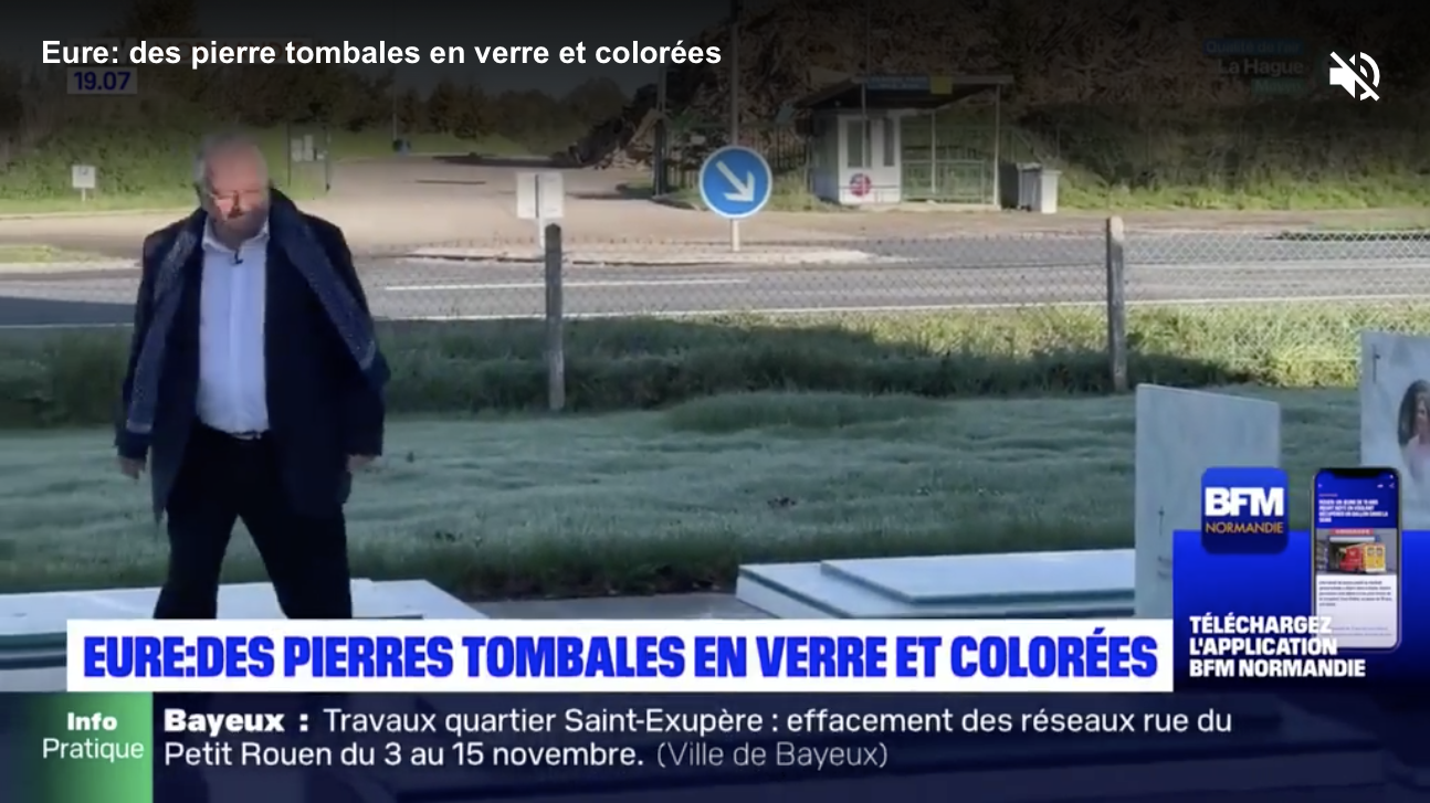 Eure : des pierre tombales en verre et colorées.