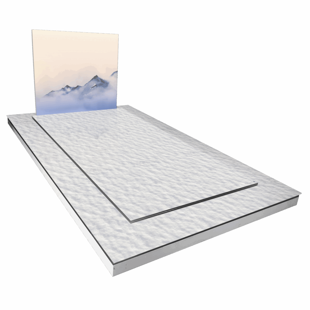 Monument funéraire Neige évoquant la beauté paisible d'un paysage montagneux enneigé. Design épuré offrant un sentiment de quiétude hivernale.