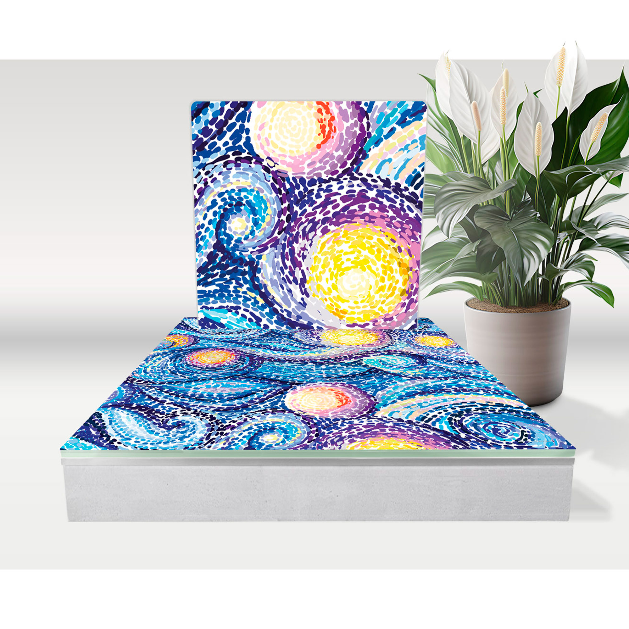 Le cinéraire Aqua évoque la quiétude et la beauté de l’eau. Le dessus présente une goutte d’eau tombant avec grâce, créant des ondulations à la surface. En contraste, le fond dépeint des poissons rouges évoluant librement dans les profondeurs sombres, ajoutant une touche de couleur et de vie à cette scène paisible. C’est une célébration de la nature et de ses merveilles aquatiques.