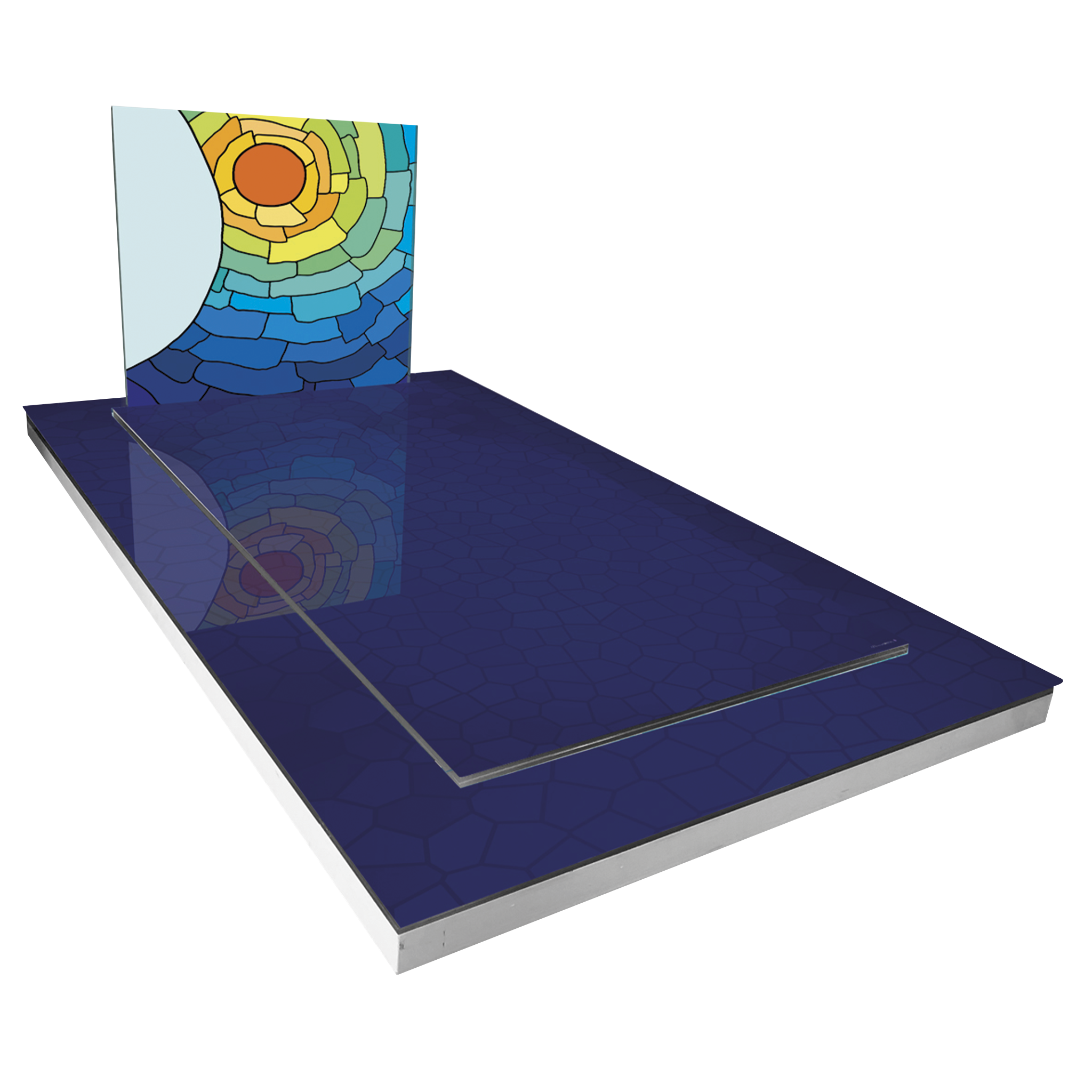 Le monument Aurore Céleste est une véritable représentation de l’espoir et de la renaissance. La dalle bleue profonde sert de toile de fond à un motif solaire radieux, évoquant la beauté d’une aurore nouvelle. Ce design captivant est complété par une représentation subtile de l’astre solaire sur le côté. La combinaison du bleu profond avec le motif solaire éclatant évoque la tranquillité, le renouveau et l’espoir que chaque nouvelle aube apporte. C’est une pièce artistique dédiée à la célébration de la vie éternelle et au souvenir impérissable.