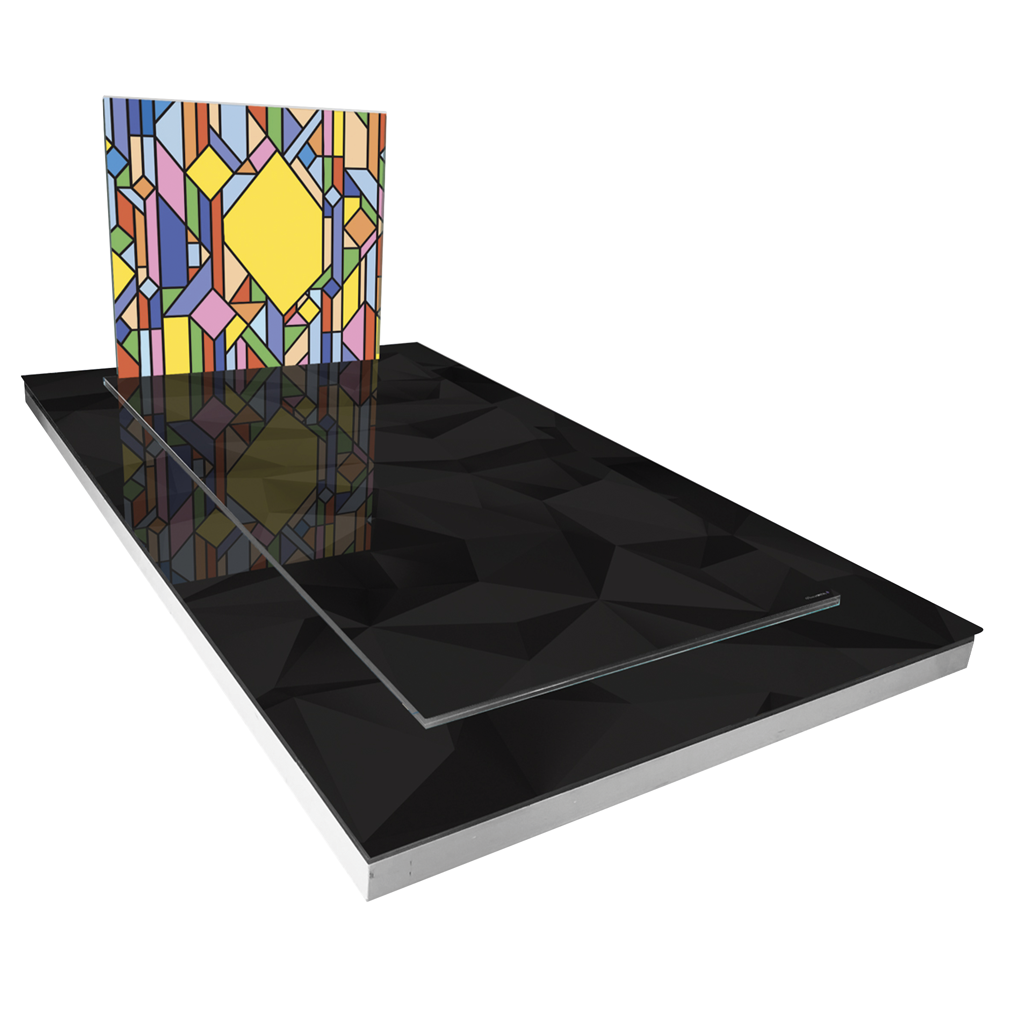 Le monument Cristo Soleil est une célébration éclatante de la vie à travers l’art. Avec une dalle funéraire noire profonde, ce monument sert de toile de fond à un motif géométrique lumineux qui rappelle les rayons du soleil. Les couleurs jaunes, oranges et rouges se mélangent dans une danse harmonieuse, évoquant les levers et couchers de soleil, des moments de tranquillité et de réflexion. Chaque angle, chaque forme s’entrelace pour former un hommage vibrant à la lumière et à la chaleur du soleil, rappelant à ceux qui regardent que même dans les moments les plus sombres, il y a toujours de la lumière à trouver.