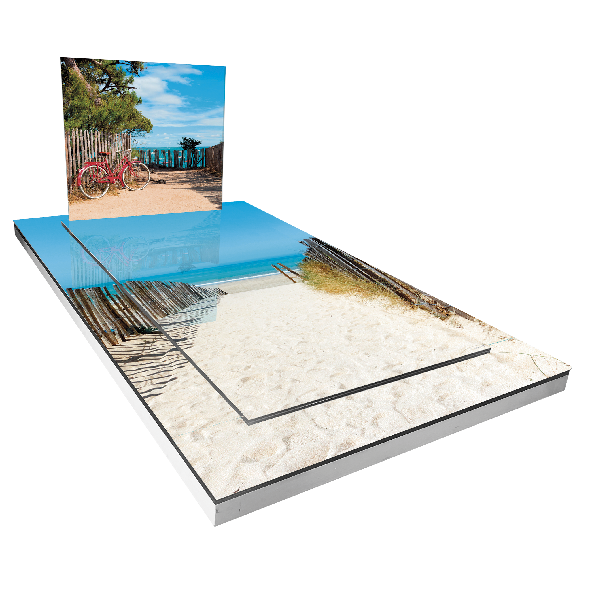 Un hommage apaisant inspiré des paysages emblématiques de l’Île de Ré, mêlant sable fin, dunes et horizon bleu pour symboliser sérénité et douceur des souvenirs.