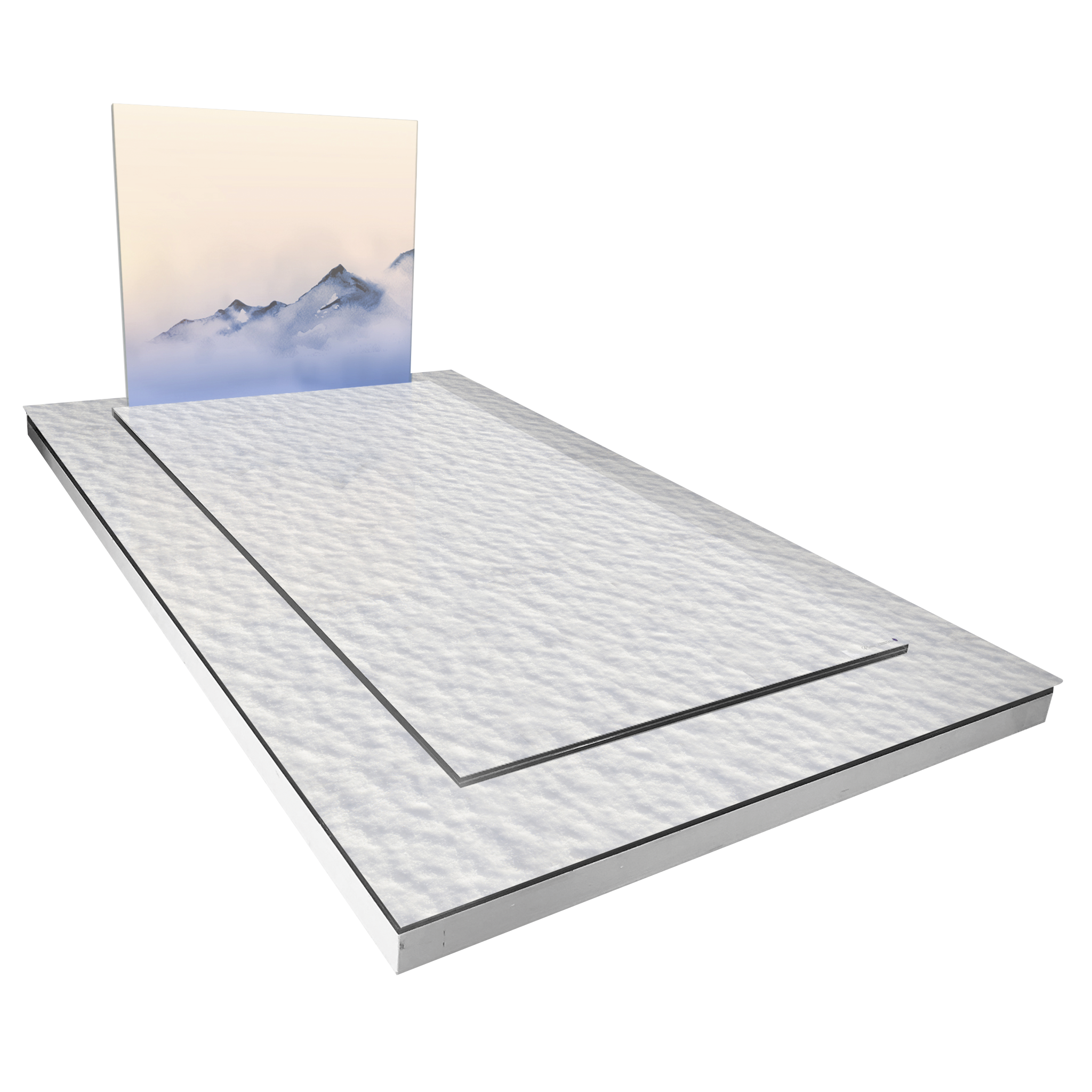 Monument funéraire Neige évoquant la beauté paisible d'un paysage montagneux enneigé. Design épuré offrant un sentiment de quiétude hivernale.